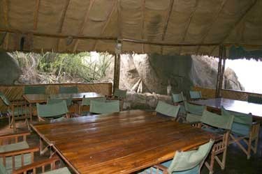 Las instalaciones principales constan de un pintoresco salón comedor circular al aire libre y un salón-biblioteca. Hay un gran hoyo circular que se utiliza para hacer una fogata, alrededor de la cual hay tumbonas, un lugar excelente para tomar una copa y compartir con los demás huéspedes las experiencias de safari vividas. Es esta una actividad muy sencilla pero muy reconfortante, los grandes lodges no suelen ofrecerla.